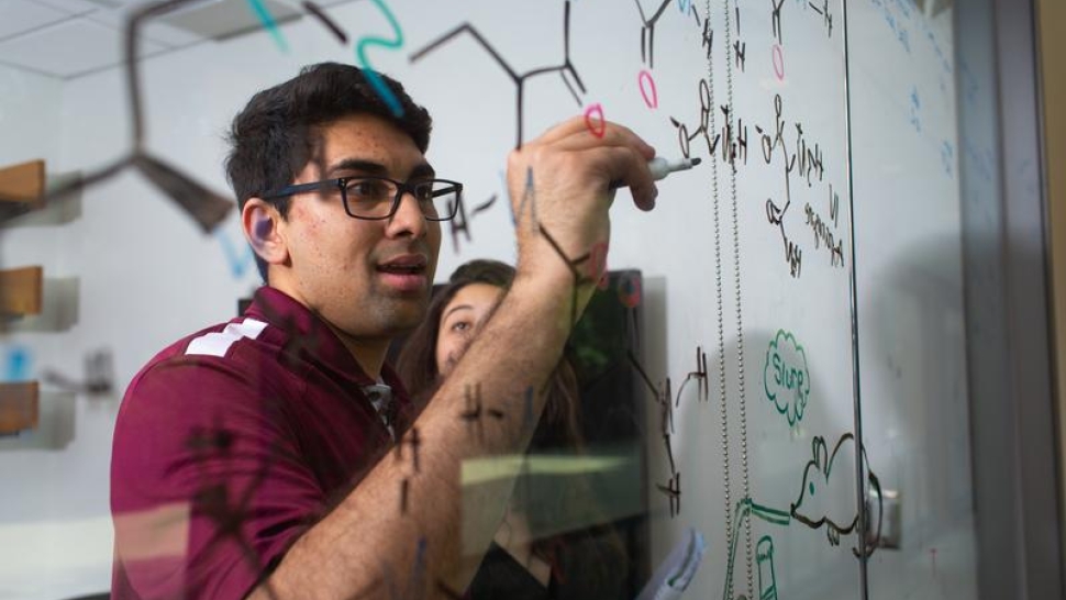 And on the top floor of MMS, physics professor Jennifer Steele, Ph.D., is seeing the big picture through nanotechnology—miniscule structures that scientists can engineer to study and solve microscopic problems. Steele’s lab is currently studying fluorescence resonance energy transfer (FRET), a technique that scientists can use to measure the relative distance between microscopic molecules—such as the proteins in our cells—that are mere nanometers or ångströms apart.